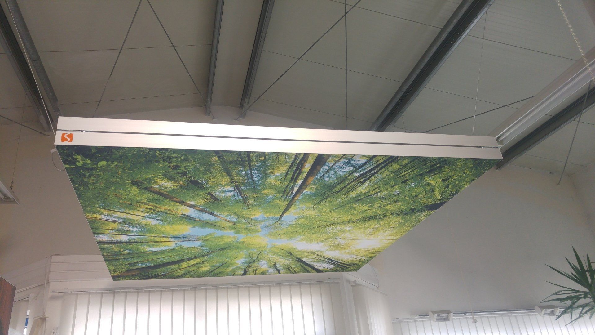 Der Aluminiumrahmen wird fest installiert und mit dem gewünschten Motiv auf einem Stoffbanner bespannt. Einer der Vorteile dieser Raumgestaltung, ist die Flexibilität. Sie legen sich nicht auf ein Design fest, sonder können die Motive je nach Stimmung und gefallen wechseln.
